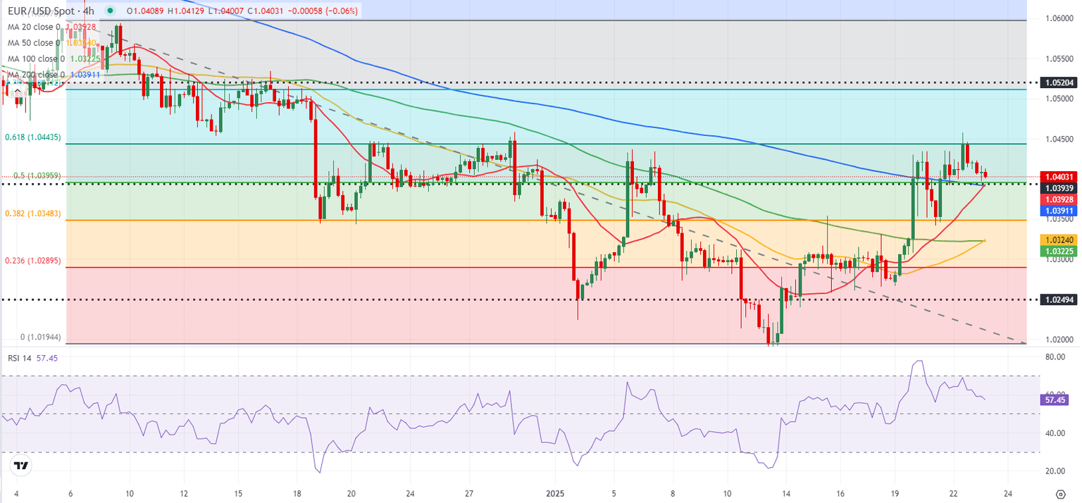 - EUR/USD trades near 1.0400 in the European morning on Thursday.