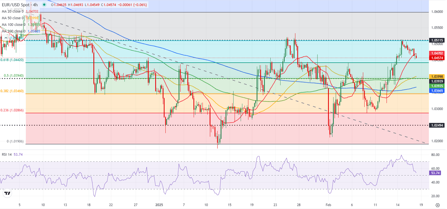 The Relative Strength Index (RSI) indicator on the 4-hour chart declines toward 50 and EUR/USD closed the two 4-hour candles below the 20-period Simple Moving Average (SMA), reflecting a loss of bullish momentum.