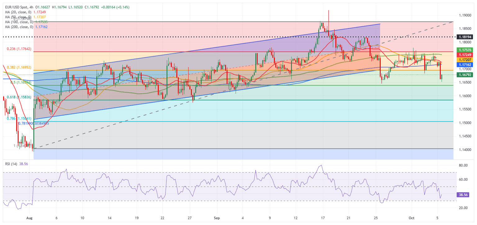 On the downside, 1.1640 (Fibonacci 50% retracement of the latest uptrend) aligns as the first support level for EUR/USD ahead of 1.1580 (Fibonacci 61.8% retracement) and 1.1500 (round level, Fibonacci 78.6% retracement). Looking north, resistance levels could be spotted at 1.1700-1.1715 (Fibonacci 38.2% retracement, 200-period SMA) and 1.1750-1.1760 (100-period SMA, Fibonacci 23.6% retracement).