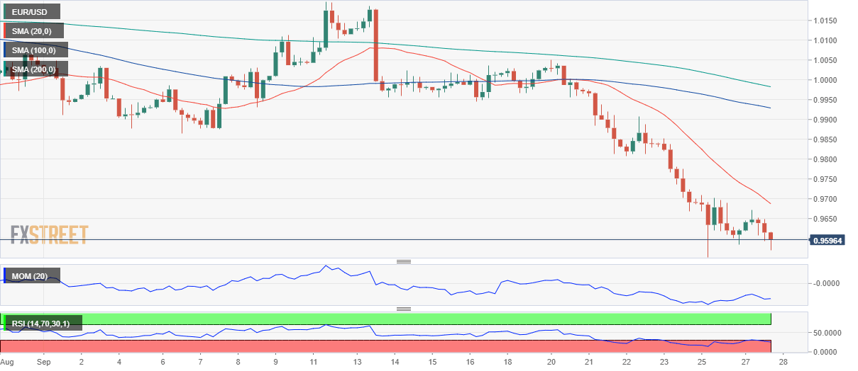 - EUR/USD could not retain gains above 0.9600, hinting at lower lows coming next.