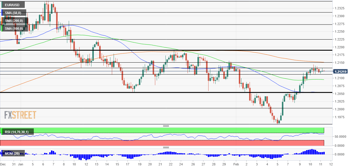Some resistance is at the daily high of 1.2130, followed by 1.2150, where the 200 SMA hits the price. Further above, the upside target is 1.2190, which was a stubborn cap in January.