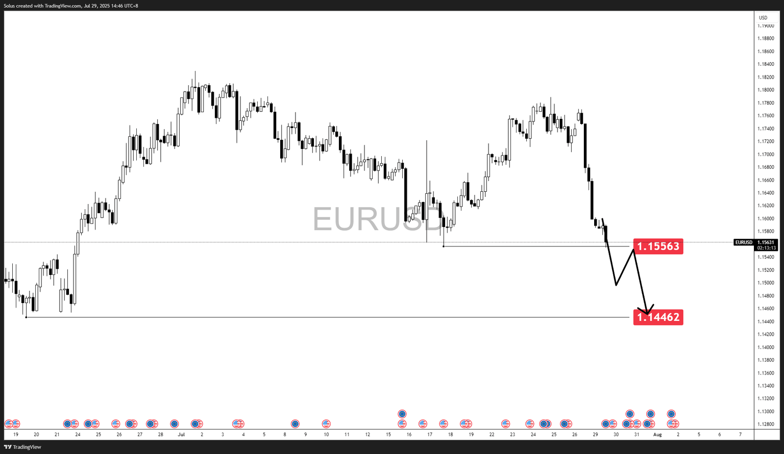 All eyes now turn to this week’s Fed rate decision and Non-Farm Payrolls report, which could set the tone for EUR/USD. A hawkish Fed and strong jobs data could reinforce the dollar’s dominance and extend the downside, while softer prints may finally give the euro room to recover from its 1.1556 support zone.