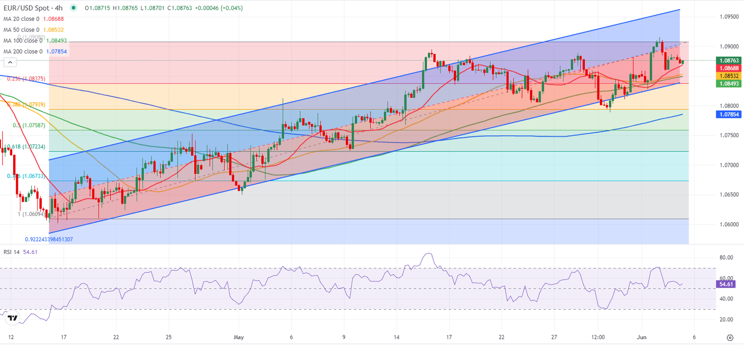 On the downside, 1.0850-1.0840 (100-period Simple Moving Average (SMA), lower limit of the ascending channel) aligns as first support before 1.0800 (psychological level, static level) and 1.0780 (200-period SMA).
