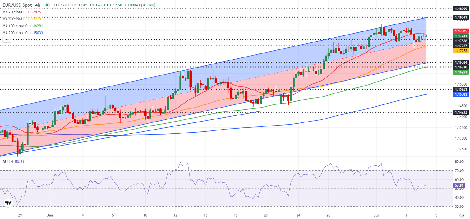 EUR/USD stays in a consolidation phase above 1.1750 after closing the previous two days in negative territory. With financial markets in the US remaining closed in observance of the July 4 holiday, the pair's action could remain subdued heading into the weekend.