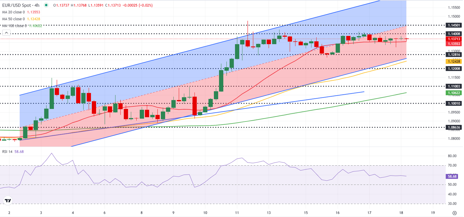 - EUR/USD moves sideways in a narrow range above 1.1350 on Friday.