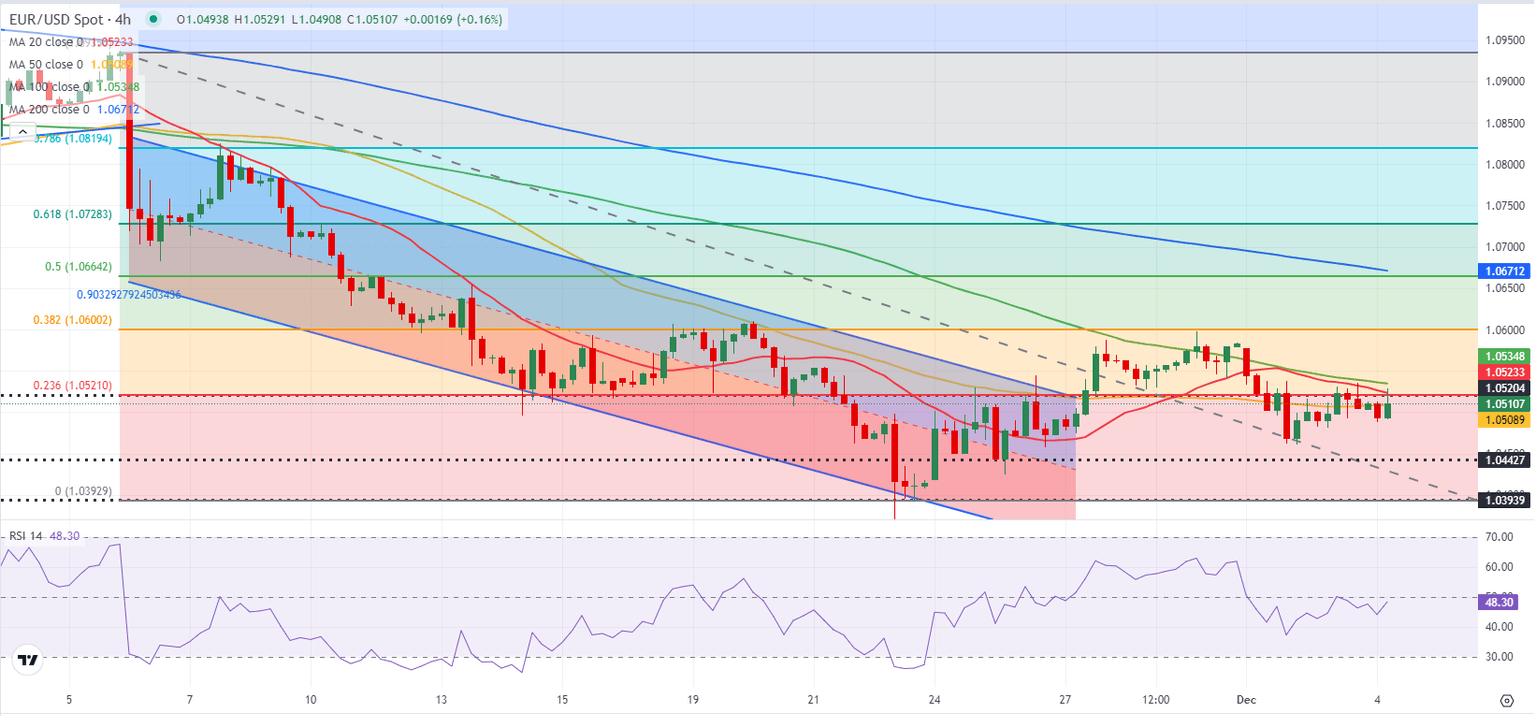 EUR/USD faces immediate resistance at 1.0520-1.0530, where the Fibonacci 23.6% retracement of the latest downtrend and the 100-period Simple Moving Average (SMA) are located. In case the pair rises above this area and starts using it as support, technical buyers could take action. In this scenario, 1.0600 (Fibonacci 38.2% retracement) could be seen as next resistance before 1.0660-1.0670 (Fibonacci 50% retracement, 200-period SMA).