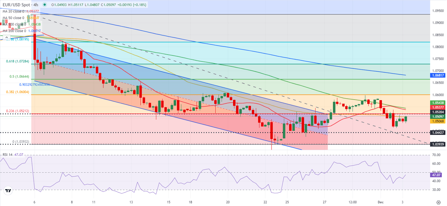 In case EUR/USD rises above 1.0520, next hurdle is located at 1.0545 (100-period Simple Moving Average (SMA) on the 4-hour chart) ahead of 1.0600 (Fibonacci 38.2% retracement).