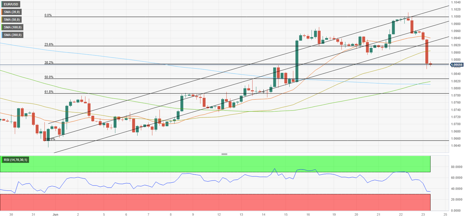 FOMC Chairman Jerome Powell's hawkish rhetoric on the second day of his congressional testimony and the risk-averse market atmosphere helped the US Dollar (USD) outperform its rivals on Thursday. Following a quiet Asian session, the pair turned south once again on growing fears of a recession in the Euro area, touching its lowest level in a week near 1.0850.
