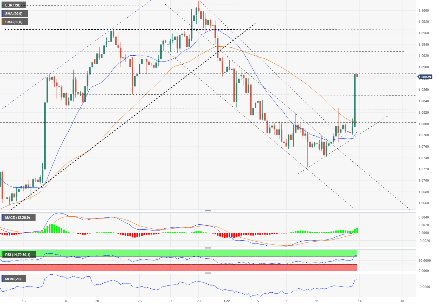 The EUR/USD pair rallied over 100 pips following the Federal Reserve meeting, to the 1.0900 aera. Despite the magnitude of the move, the momentum remains firmly bullish, supported by the US Dollar's decline.