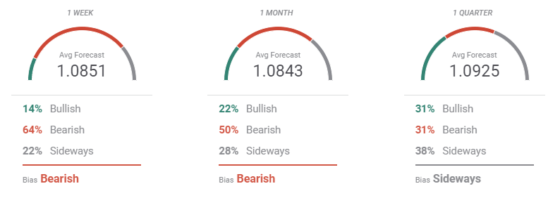 The FXStreet Forecast Poll shows that disappointed bulls are willing to give up, as most polled experts expect the pair to fall in the upcoming weeks. Bears represent 64% in the weekly perspective and decrease to 50% in the monthly one. However, bulls in this last time frame represent just 22%. On Average, the pair is seen holding between familiar levels, unable to run past the 1.1000 critical figure but holding above the mentioned yearly low.