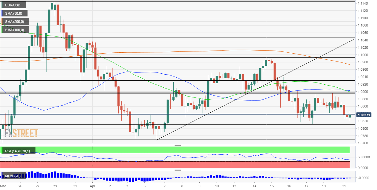 Resistance awaits at 1.09, which is the weekly high and where the 50 and 100 SMAs hit the price. It is followed by 1.0930, a swing high from early April, and then by 1.0995, April's high.