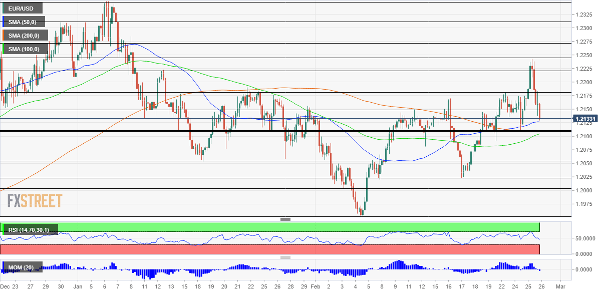 Some short-term resistance awaits at 1.2150, a peak recorded earlier in February. It is followed by 1.2183, the daily high, and by 1.2220 and 1.2145.