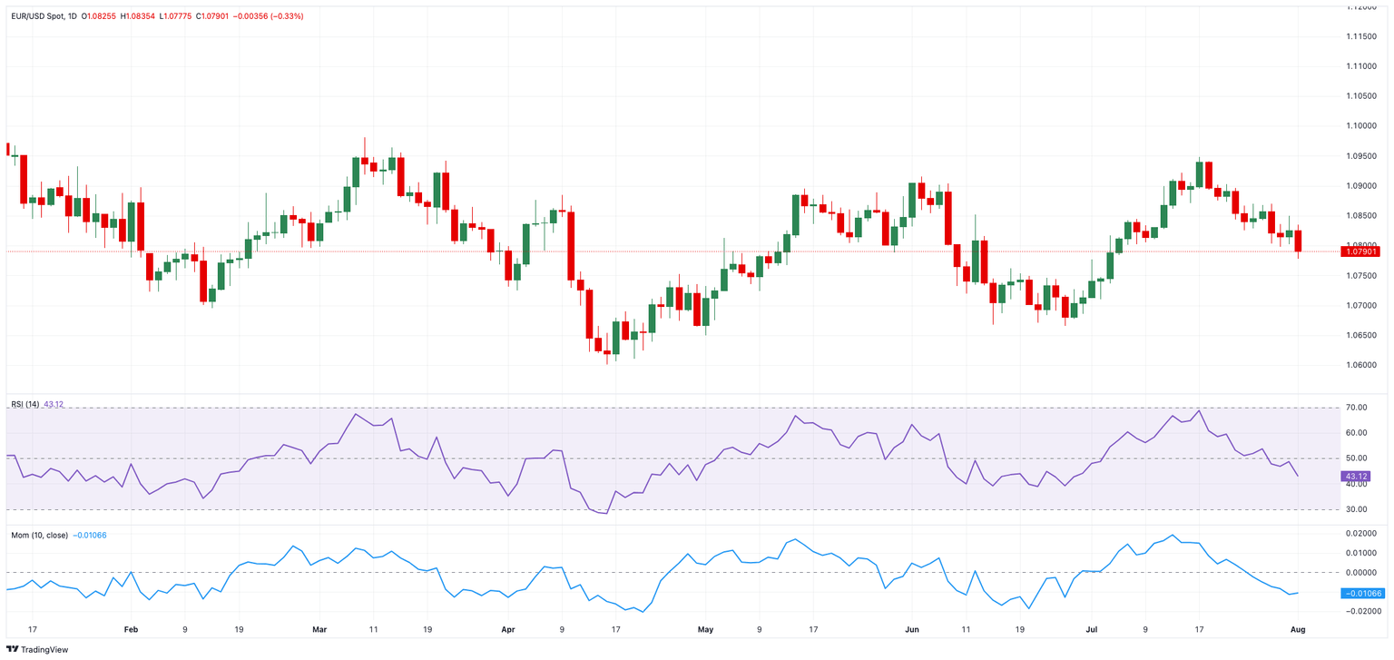 - EUR/USD dropped to fresh lows near 1.0780 on Thursday.