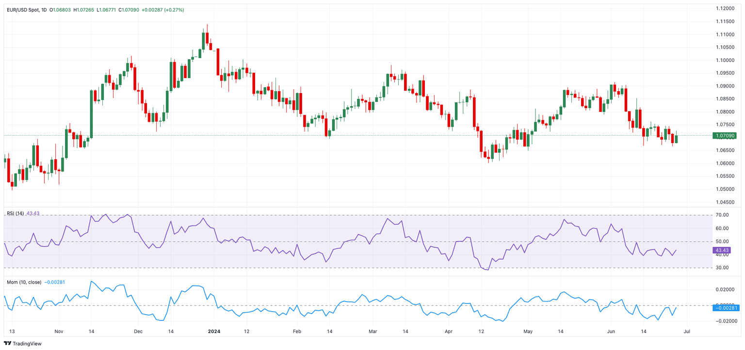 If bears maintain control, EUR/USD may revisit the June low of 1.0666 (June 26), then the May low of 1.0649 (May 1), and lastly the 2024 bottom of 1.0601 (April 16).