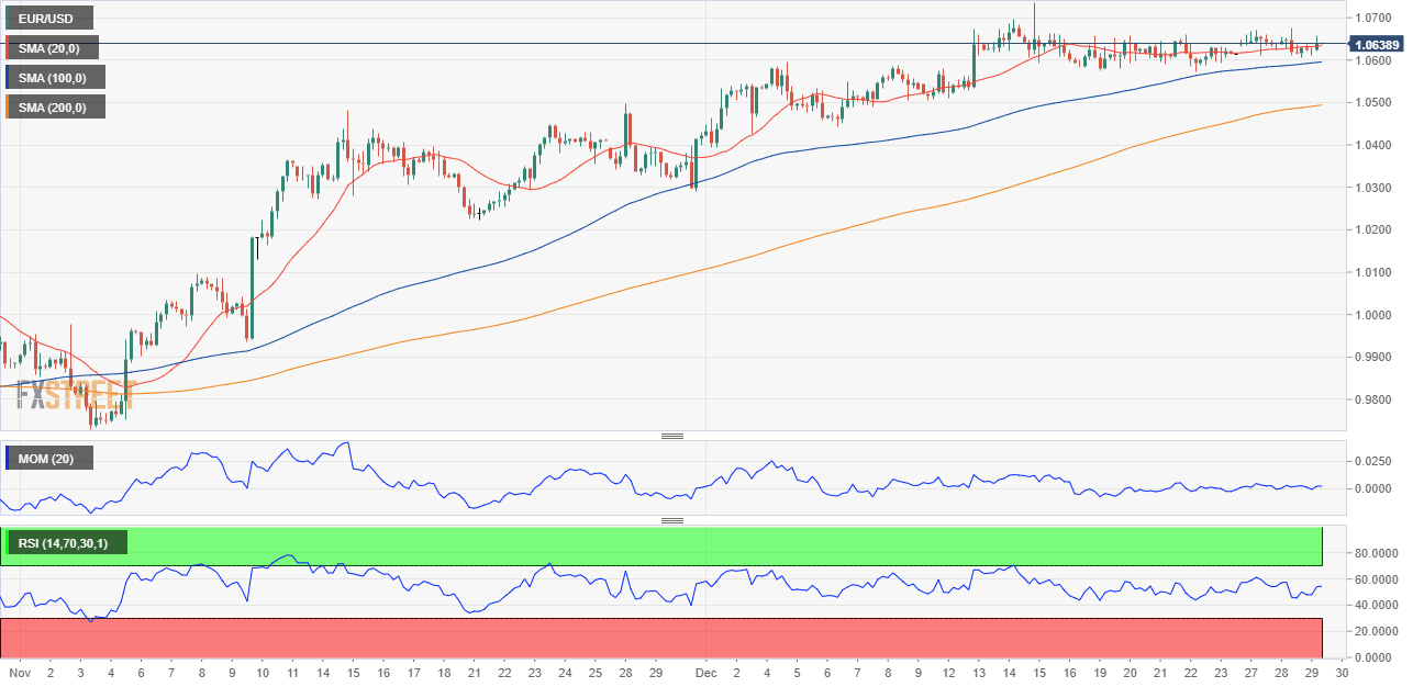 The EUR/USD pair keeps trading within familiar levels on Thursday, bottoming during the Asian session at 1.0605 and peaking during European hours at 1.0657. Trading remains choppy amid a scarce economic calendar and due to the winter holidays in the Northern Hemisphere, although the market sentiment continues to deteriorate. The latest news from China does not seem encouraging as the number of coronavirus cases has multiplied while the government moves away from its zero-covid policy.