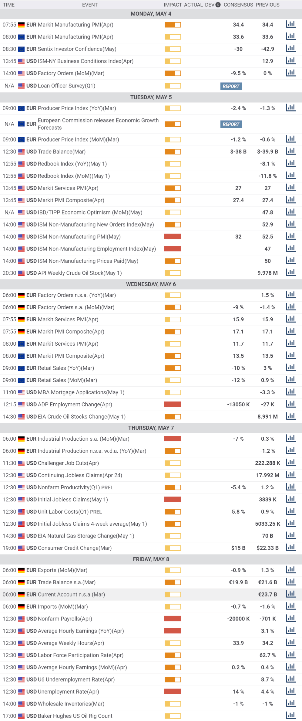 - US April Nonfarm Payroll report to show that the country lost 20 million jobs.