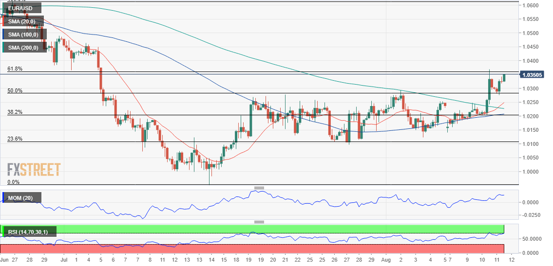- The EUR/USD pair has its bullish potential intact but needs to clear 1.0360.