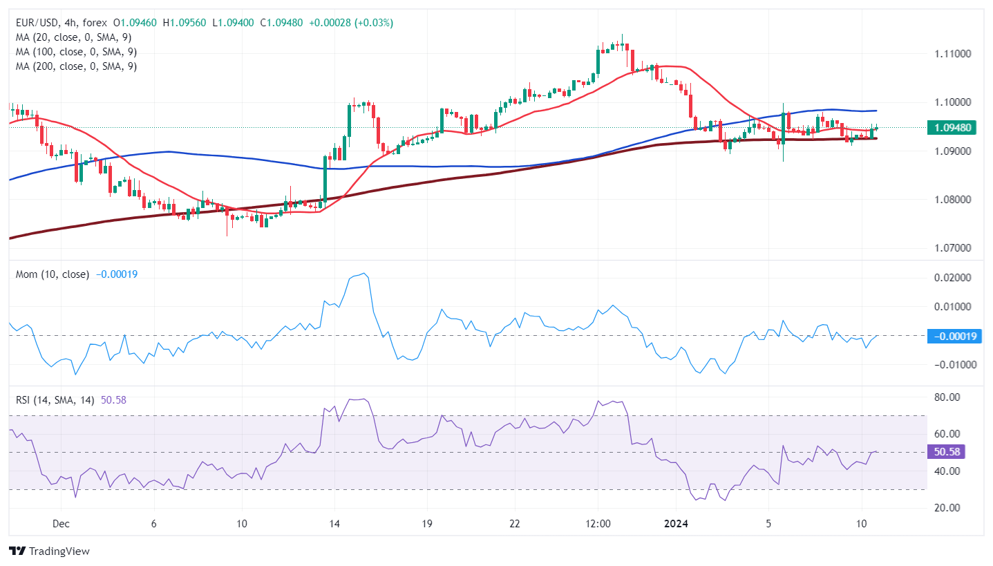 The near-term picture is quite alike. In the 4-hour chart, the pair seesaws around a flat 20 SMA, while the 200 SMA provides support around 1.0920 and the 100 SMA lies flat just ahead of the 1.1000 figure. To top it all, technical indicators head nowhere, stuck around their midlines since Jan 5. A directional breakout seems unlikely in the near term, with the pair set to remain within familiar levels until the release of the US Consumer Price Index (CPI).