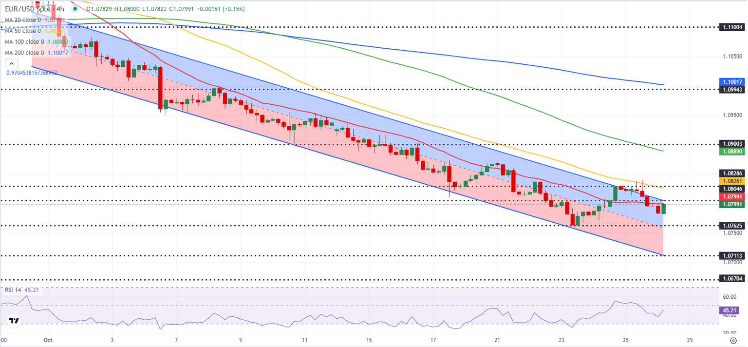 EUR/USD was last seen trading near the upper limit of the descending regression channel coming from late September, currently located at 1.0800. Once the pair rises above this level and confirms it as support, technical buyers could show interest. In this scenario, the 50-period Simple Moving Average (SMA) on the 4-hour chart could act as interim resistance at 1.0830 before 1.0870 (200-day SMA).
