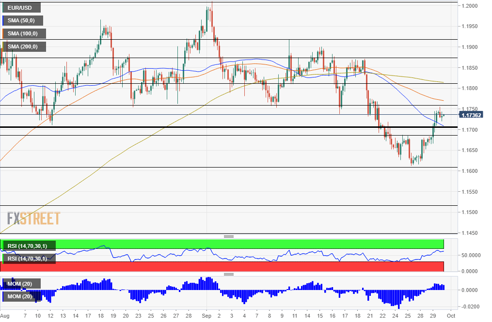 Critical support awaits at 1.17, which is a round number and where the 50 SMA hits the price. It is followed by 1.1685, which held EUR/USD last week, and then by 1.1610.