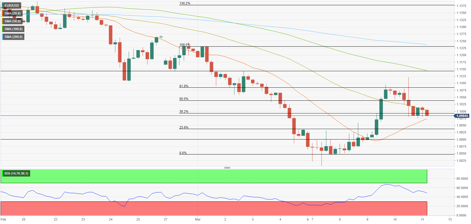 Nevertheless, EUR/USD is struggling to shake off the bearish pressure with the greenback holding its ground against its rivals. The data from the US revealed on Thursday that the annual inflation, as measured by the Consumer Price Index (CPI), jumped to a fresh multi-decade high of 7.9% in February. Rising US Treasury bond yields on hot inflation data and the risk-averse market environment amid renewed fears over a further escalation of the Russia-Ukraine conflict provide a boost to the dollar ahead of the weekend.