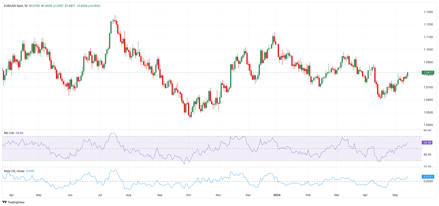 The persistence of the negative sentiment surrounding the US Dollar (USD) spurred another positive reaction in EUR/USD, propelling it towards five-week highs above the 1.0800 hurdle on turnaround Tuesday.