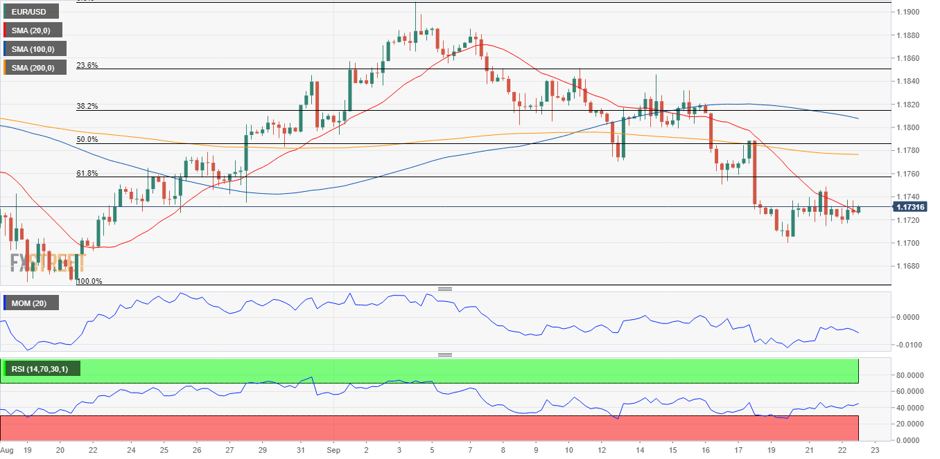 The EUR/USD pair quietly consolidates a handful of pips above the 1.1700 figure, with financial markets in wait-and-see mode ahead of the US Federal Reserve monetary policy decision. The central bank is widely anticipated to maintain its monetary policy on hold, as macroeconomic figures accompany the dovish tilt seen in August. Inflation has receded from its highs, somehow in line with policymakers temporary concept, while employment growth remains sluggish. Additionally, concerns related to the spread of the Delta variant put a hold on policymakers.