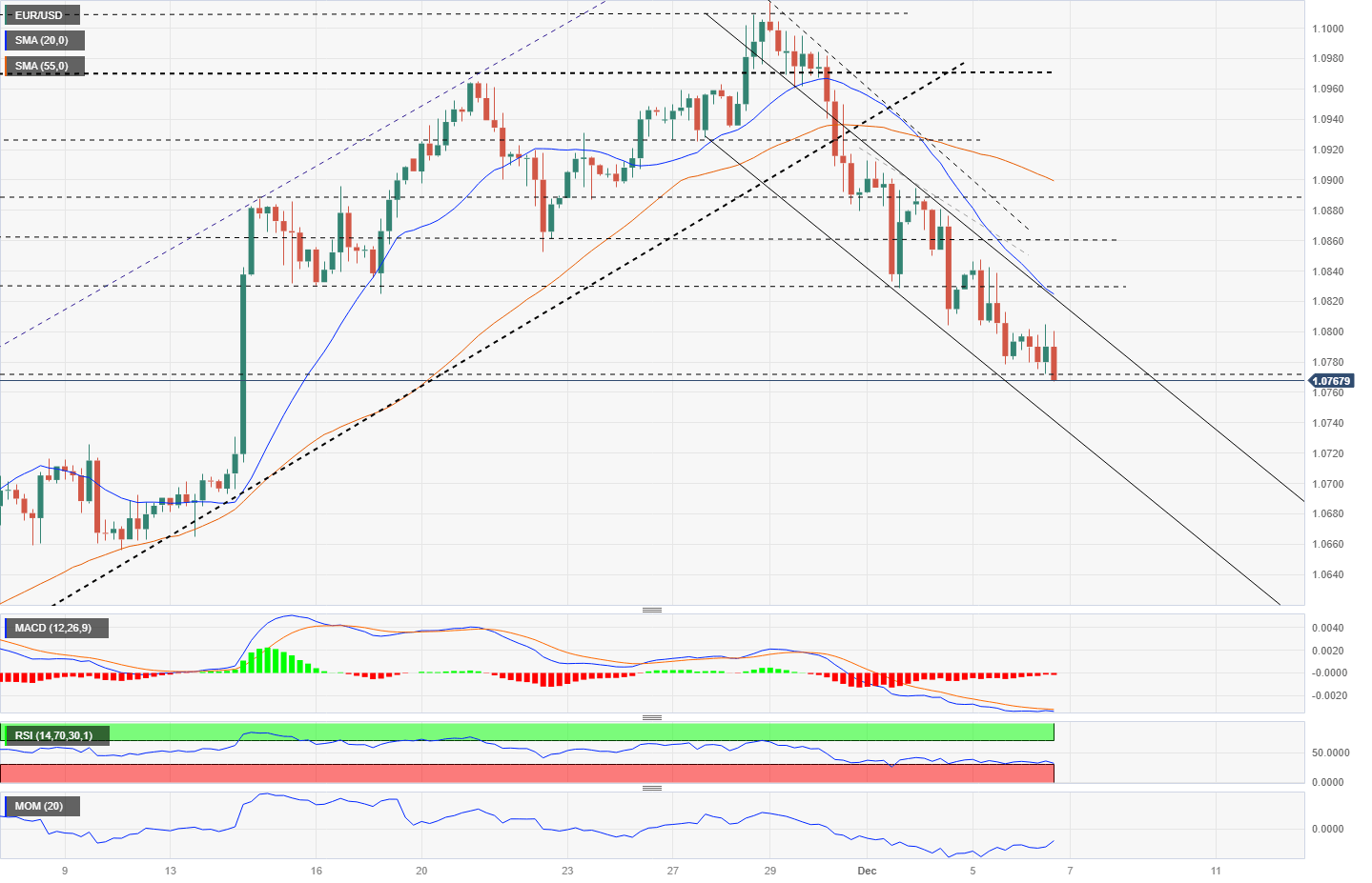 The EUR/USD dropped for the sixth consecutive day, hitting levels below 1.0770, the lowest since mid-November. The combination of a weaker Euro and a strong US Dollar continues to exert pressure on the pair. Attention will be on US jobs data.