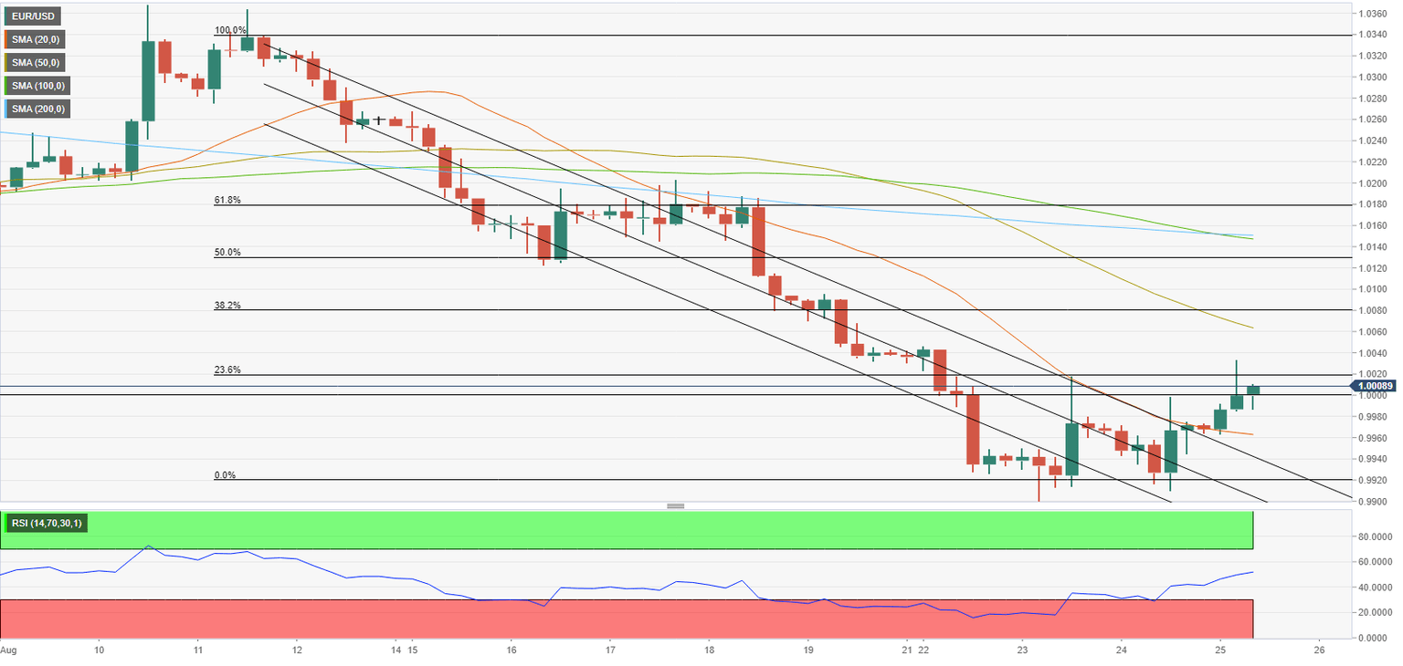 In case the pair manages to hold above parity and starts using that level as support, 1.0020 (Fibonacci 23.6% retracement of the latest downtrend) aligns as immediate resistance ahead of 1.0060 (50-period SMA) and 1.0080 (Fibonacci 38.2% retracement).