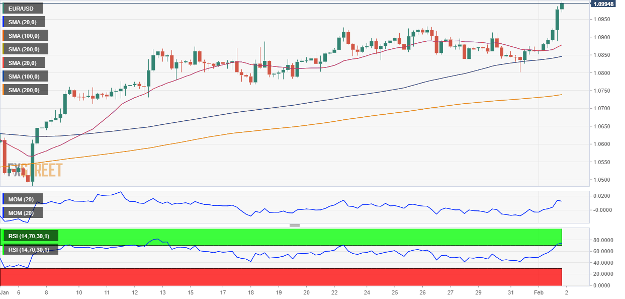 After seesawing between gains and losses, the EUR/USD pair finally broke higher and reached a fresh multi-month high of 1.1000 following the US Federal Reserve (Fed) monetary policy decision. The US Dollar gather some strength as an immediate reaction to the event but ended up plummeting as Chair Jerome Powell came out with some dovish words.