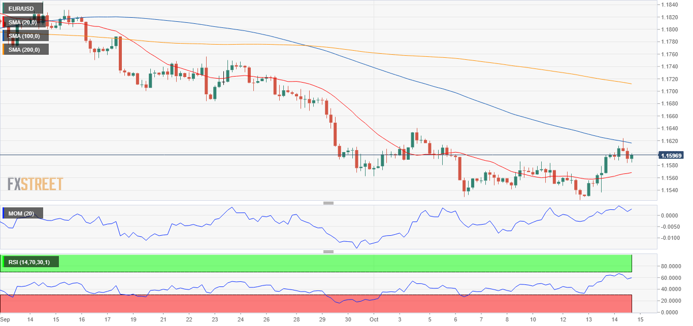 The EUR/USD pair retreated from a fresh weekly high of 1.1623, now trading in the 1.1590 price zone. The American currency is down across the board, as US government bond yields remain depressed, although it is up against the EUR and the CHF. Financial markets were in a better mood on Thursday amid solid Q3 earnings reports in the US. Even further, the US published the September Producer Price Index, which was up 0.5% MoM and 8.6% YoY, higher than the August readings although below the market’s expectations, while Initial Jobless Claims for the week ended October 8 printed at 293K, much better than the 319K expected.
