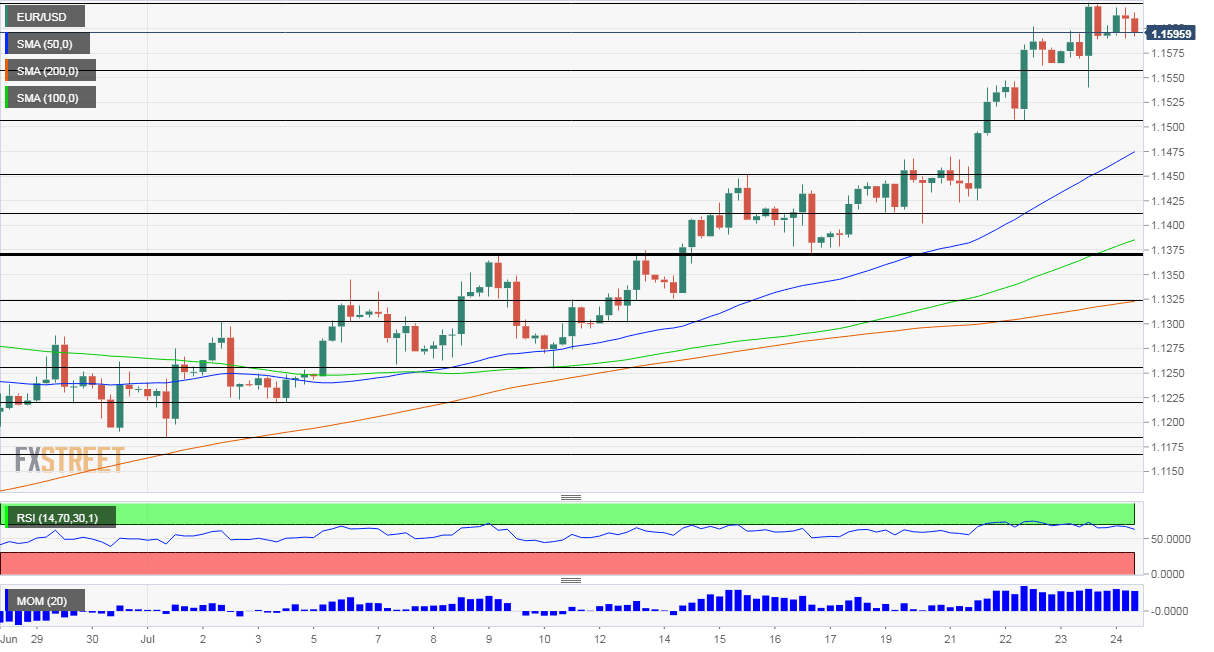 - EUR/USD is holding onto the high ground around 1.16 following upbeat eurozone PMIs.