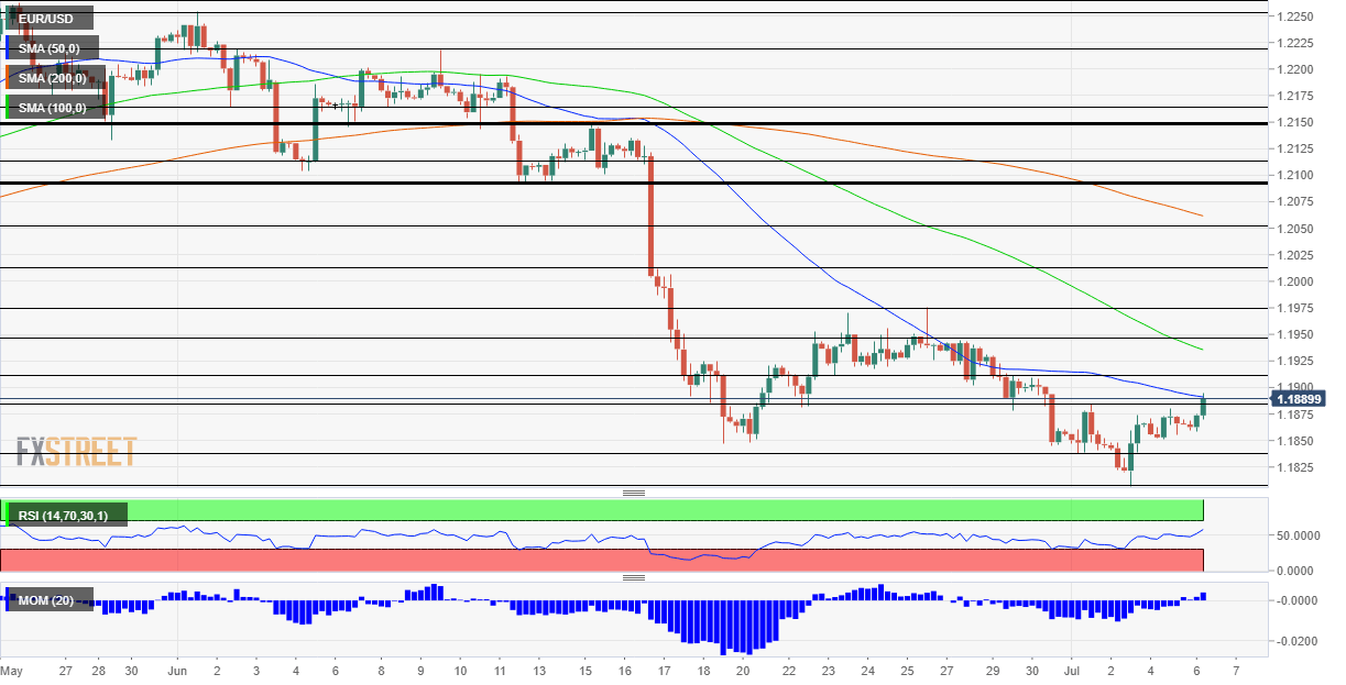Beyond the daily high of 1.1895, some resistance awaits at 1.1910, which served as support in late June. It is followed by 1.1950, which capped the pair earlier last month, and by 1.1975.