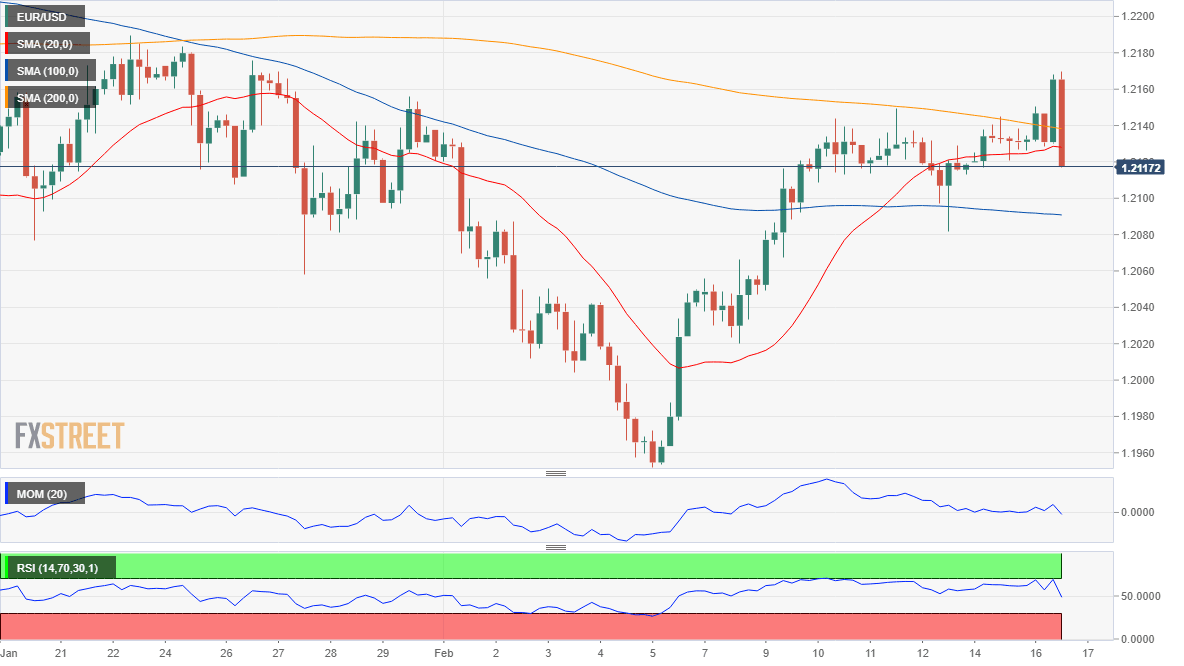 The EUR/USD pair hit a one-week high of 1.2169, as an upbeat market’s mood pressured the greenback. Investors are waiting for updates from US Congress on President Joe Biden’s stimulus package. Progress in coronavirus immunization added to the positive sentiment, although demand for the American currency returned ahead of Wall Street’s opening.