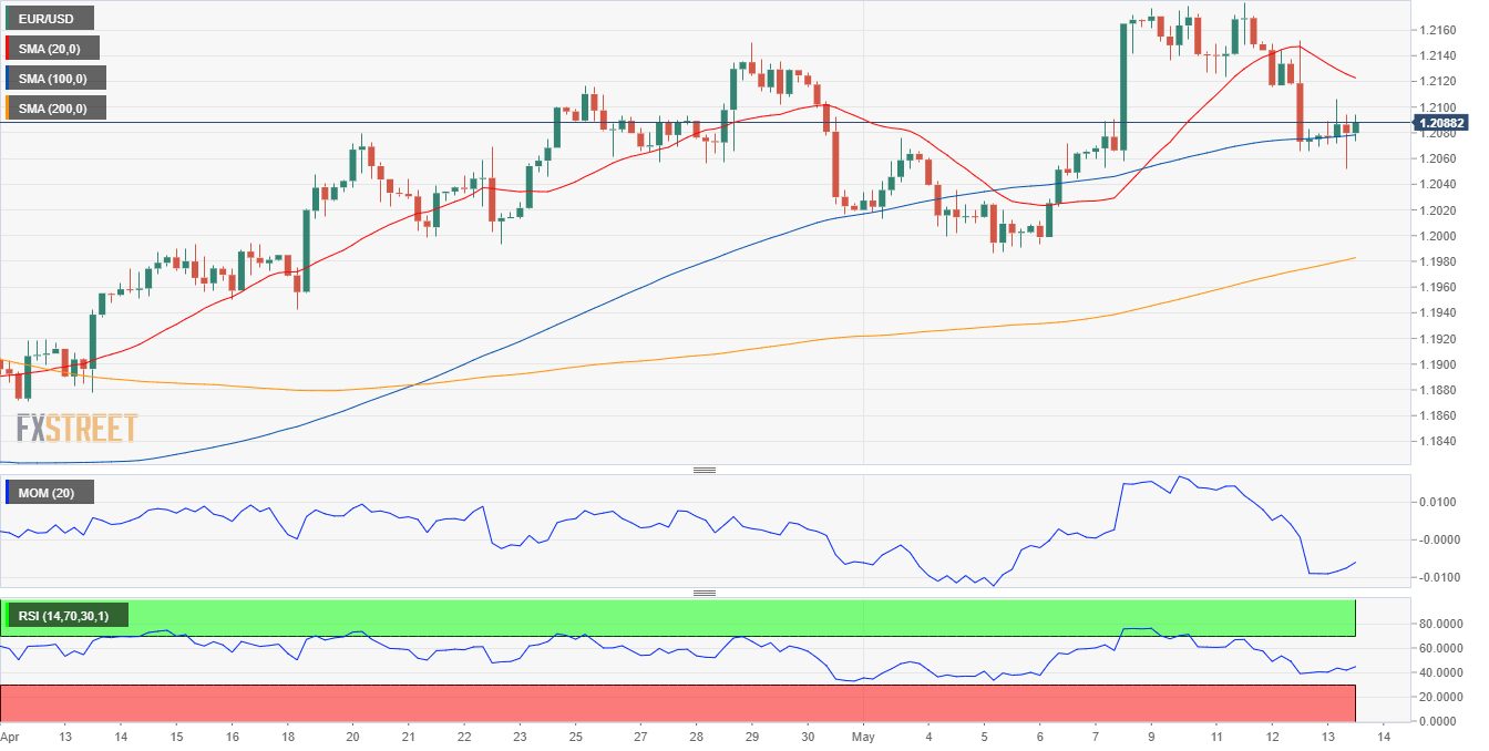 The EUR/USD pair fell to a fresh weekly low of 1.2051 as demand for the greenback persists on the heels of mounting US inflationary pressures. The greenback rose alongside government bond yields, as the yield on the 10-year US Treasury note reached the critical 1.70% threshold. Meanwhile, global equities trade in the red, reflecting fears of tighter monetary policies.