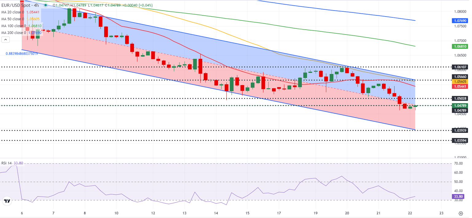 EUR/USD came under renewed bearish pressure in the American session on Thursday and touched its lowest level since October 2023 below 1.0500. The pair struggles to find a foothold early Friday as investors await key macroeconomic data releases.
