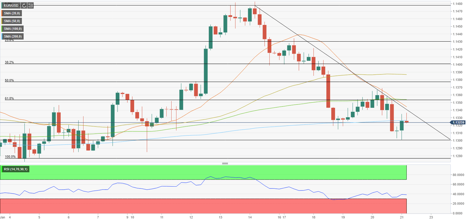 On the upside, the descending trend line acts as a static hurdle at 1.1340 ahead of 1.1350, (00-period SMA and the Fibonacci 61.8% retracement of the latest uptrend) and 1.1380 (Fibonacci 50% retracement).