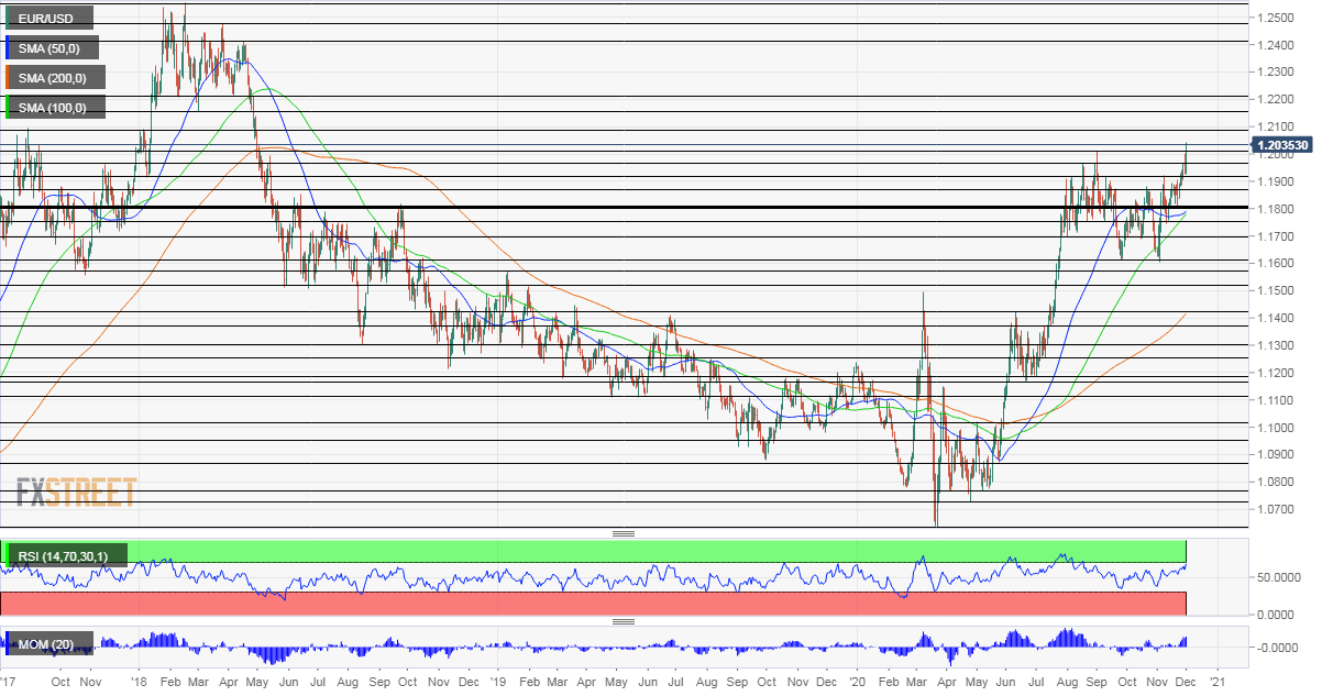- EUR/USD has surged above 1.20 to the highest since May 2018.