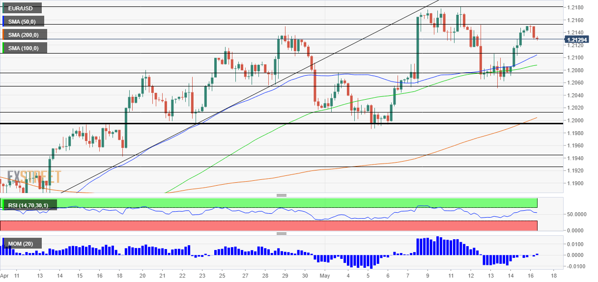 Some resistance awaits at 1.2150, which was the peak in late April and also on Monday. It is followed by 1.2180, which capped EUR/USD last week, and then by 1.2240.
