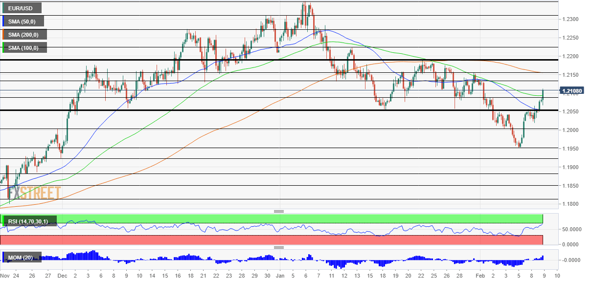 Some support awaits at 1.2090, where the 100 SMA hits the price, followed by 1.2050 mentioned earlier. Further down, 1.20 and 1.1950 await EUR/USD.
