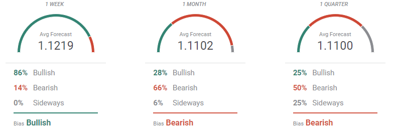 The FXStreet Forecast Poll shows that more gains are to be expected news week,as 86% of the polled experts are bullish in EUR/USD, targeting on average 1.1219. The sentiment shifts sharply to negative in the monthly and quarterly perspectives, as bears account for 66% and 50% respectively, although the average target is 1.1100 in both cases.