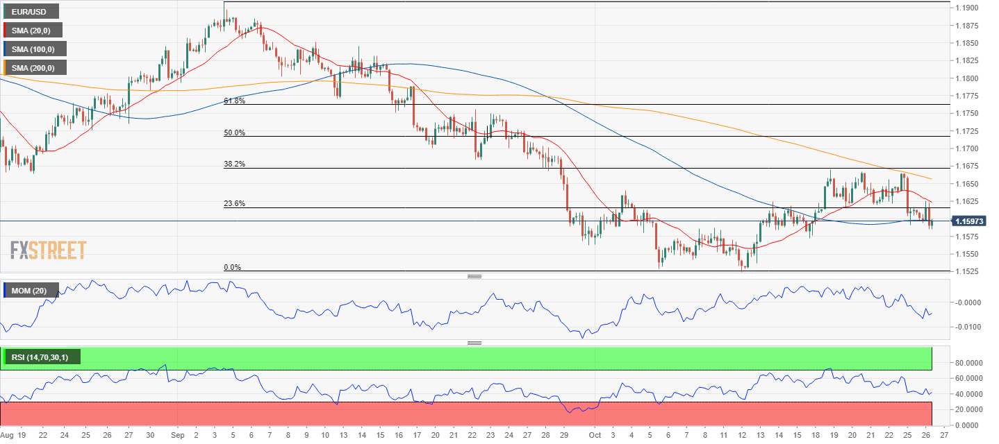 - EUR/USD is technically bearish and approaching 1.1570, an immediate support level.