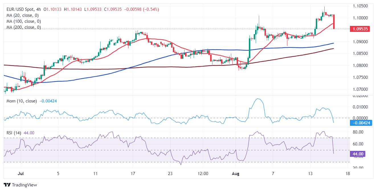 The EUR/USD pair held above 1.1000 throughout the first half of Thursday, and once again, it was confined to a tight intraday range. The pair peaked at 1.1046 on Wednesday, following the release of the United States (US) July Consumer Price Index (CPI). The data showed inflationary pressures ticked lower at the beginning of the third quarter despite the index holding above the Federal Reserve (Fed) goal of around 2%.