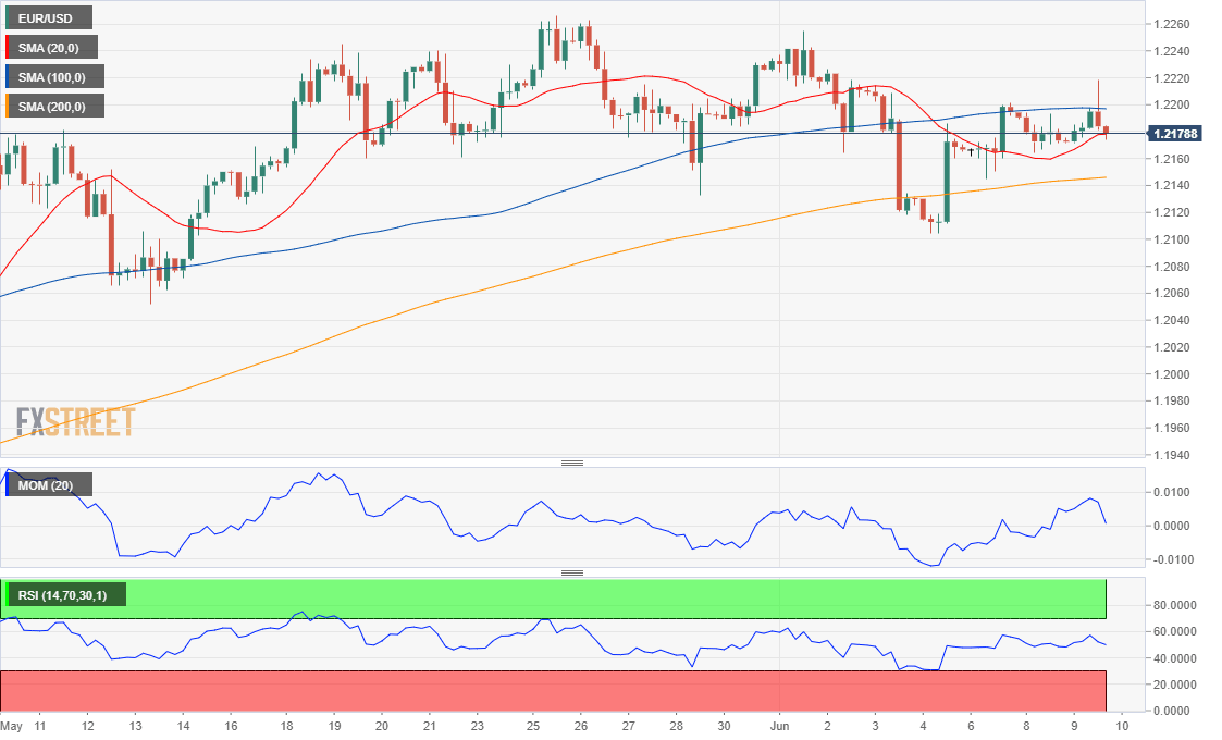 The EUR/USD pair trades near a daily low at 1.2173, neutral in the near-term. The pair is currently struggling around its 20 SMA in its 4-hour chart, while the 100 SMA capped advances earlier in the day. Technical indicators head nowhere, stuck around their midlines. A break below 1.2160 should anticipate a steeper decline, while steady gains beyond 1.2200 could see the pair approach the year’s high at 1.2349.