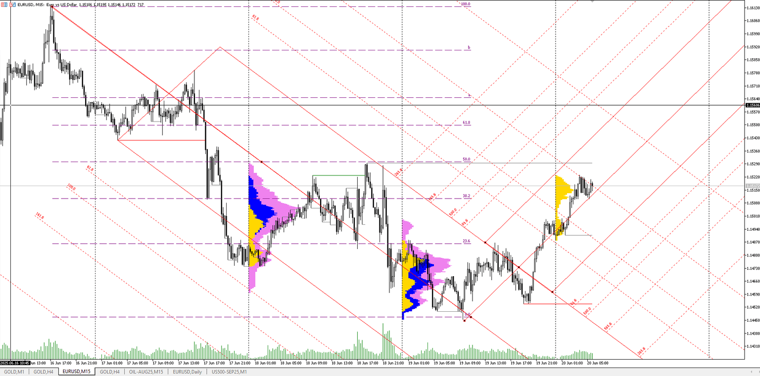 - 90° Gann Angle & Fibonacci Confluence: Strong reversal zone identified between 1.1685–1.1700, aligning with the 61.8% retracement of the prior leg.