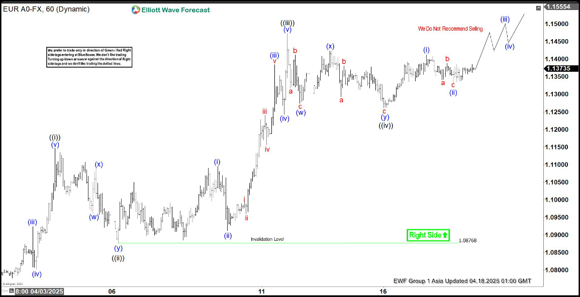 Looking at a shorter time frame, starting from March 27, 2025, EURUSD is moving in a classic five-step upward pattern. The first step peaked at 1.1146, followed by a brief dip to 1.087. The pair then surged to 1.147, and pulled back slightly to 1.126. It is now expected to push higher to complete this short-term cycle. After that, a temporary dip is likely before the upward trend resumes.