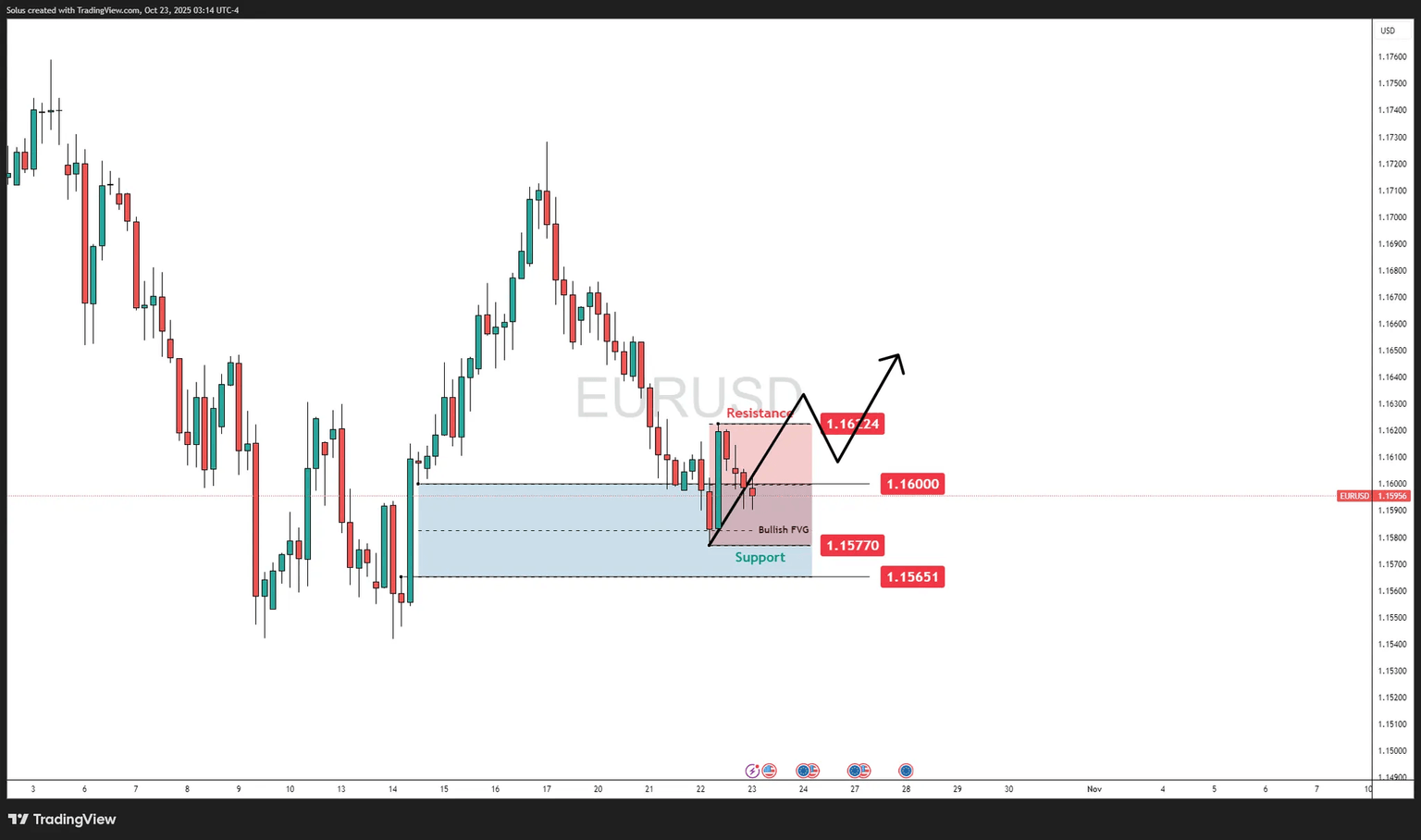 This FVG now acts as the immediate support layer, while 1.1622 caps price as short-term resistance.