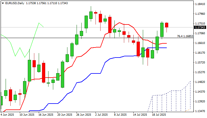 Dips were so far shallow (contained by 20DMA at 1.1708), keeping intact more significant support at 1.1685 (broken Fibo 76.4% of 2021/2022 1.2349/0.9535 downtrend).
