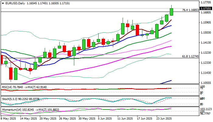 EURUSD extends steep ascend into fourth consecutive day and hit new 2025 high (also the highest since Sep 2021) on Thursday.