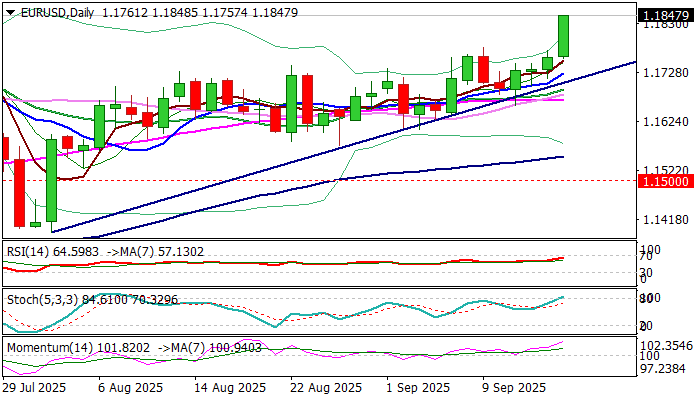 EURUSD continues to benefit from weakening dollar and accelerated gains on Tuesday, to hit new 2025 highs, after showing a minor and short-lived negative reaction to upbeat US economic data today (retail sales and industrial production).